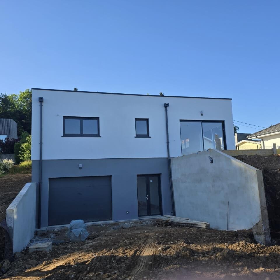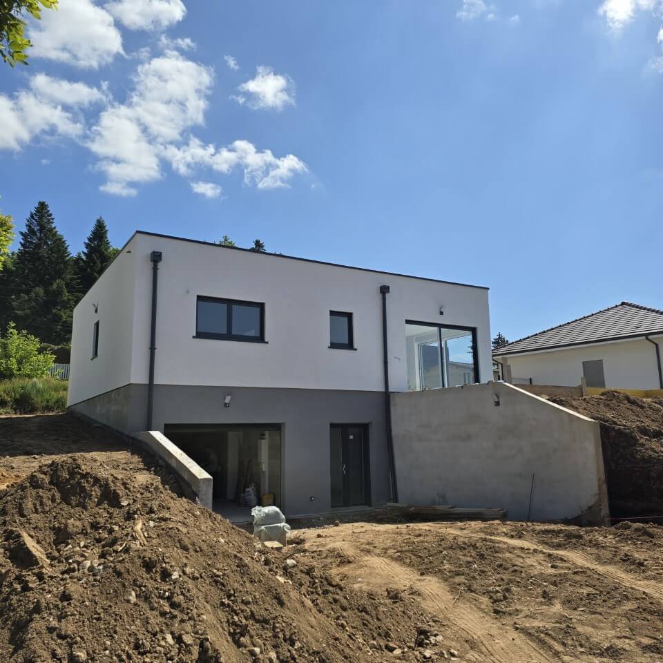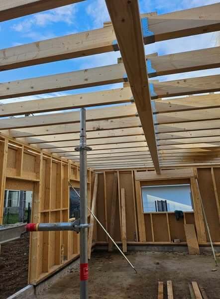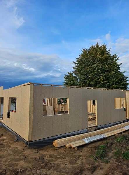 Maison contemporaine réalisée en ossature bois, combinant rapidité d’exécution, performance énergétique et design moderne.